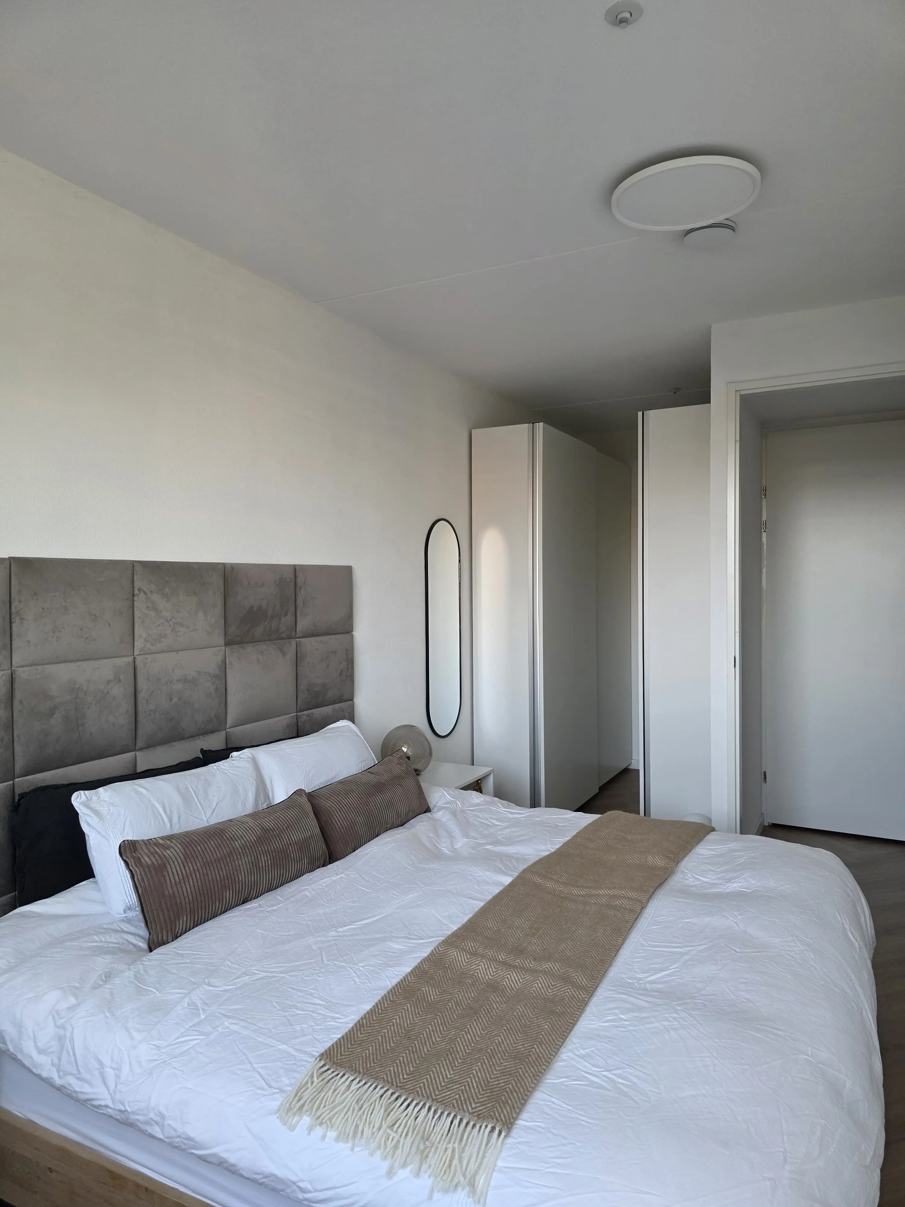 You entered the building with your phone and with that the elevator is ready for you to go to the right floor. Once you arrive on the floor, you will be guided to your apartment by the motion lighting.
