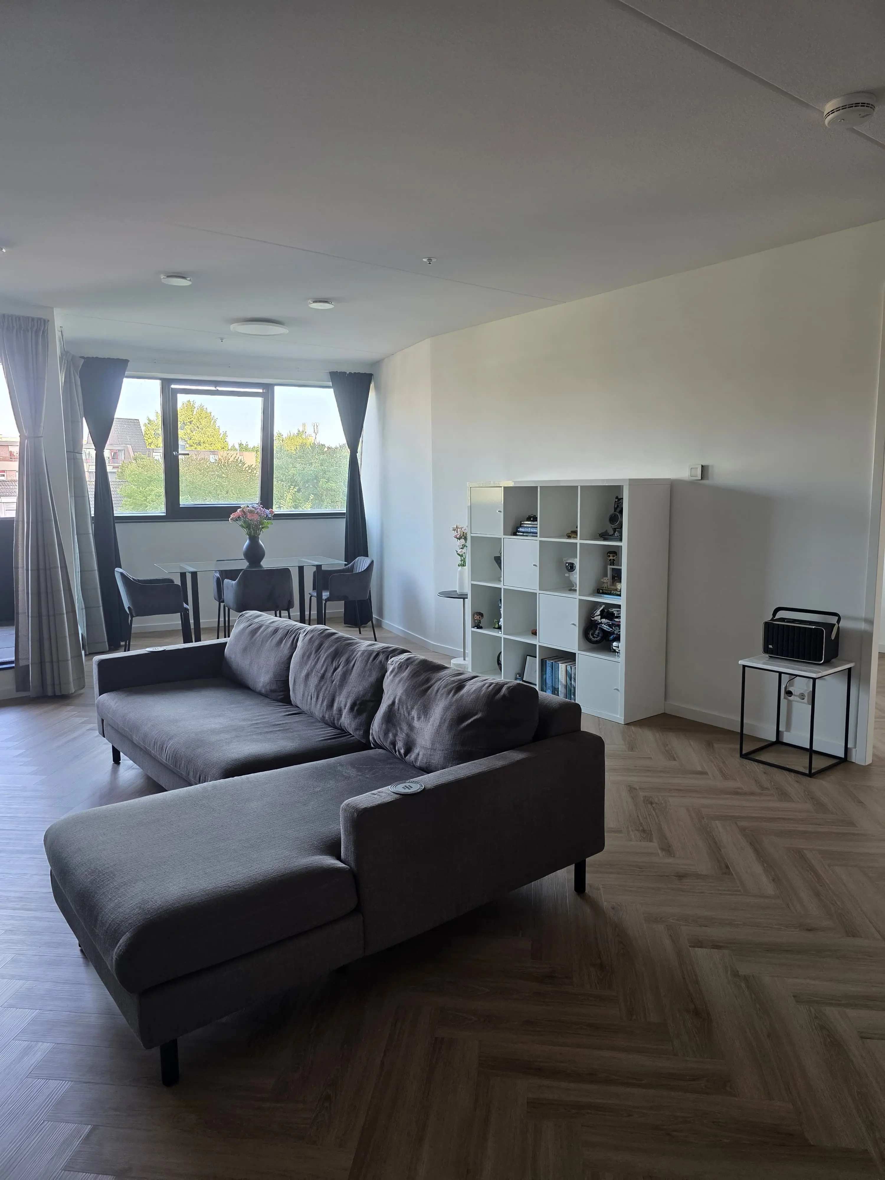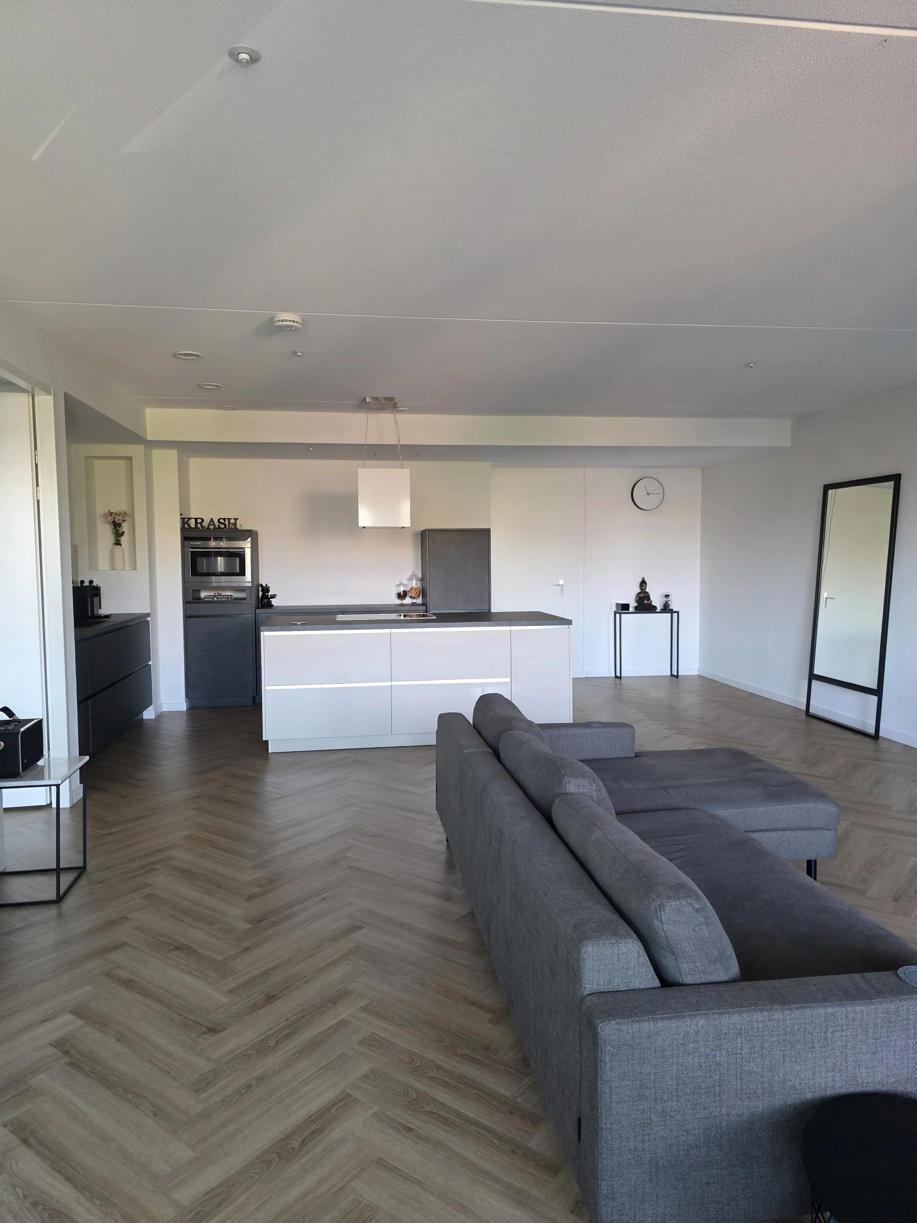 De ruime woonkamer heeft door de speelse indeling verschillende mogelijkheden voor het inrichten.In het gehele appartement ligt een luxe pvc-vloer.